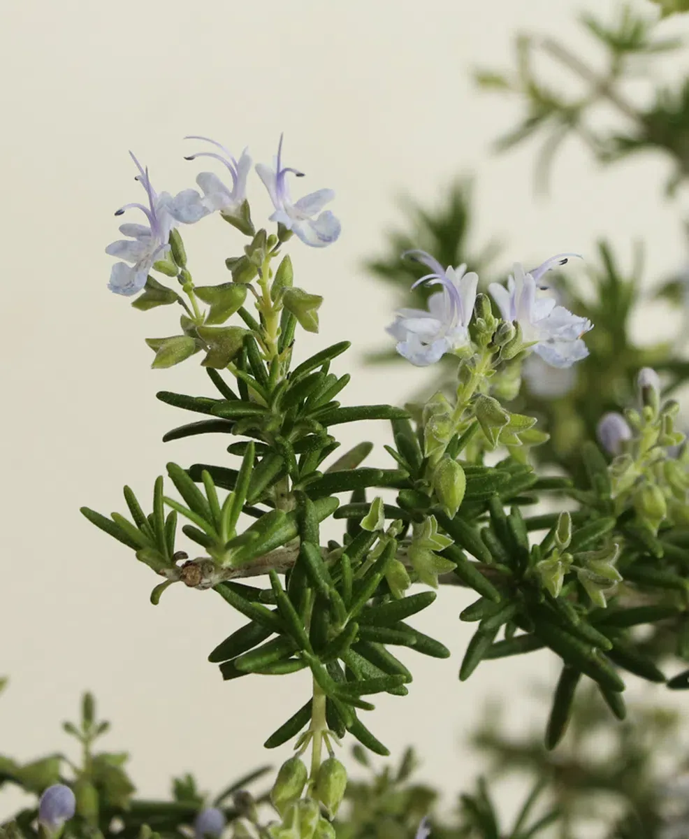 로즈마리(Rosemary)는 꿀풀과의 목본성 식물입니다. 원산지는 지중해 연안으로, 지중해 근처에서 공기 중의 수분을 얻어 성장합니다. 신선한 허브로 요리에 사용하거나 건조시켜 향신료로 쓸 수 있으며, 살균, 소독 효과가 있어 여러모로 이점이 많습니다. 외목대로 키우면 보기 좋은 형태가 되며, 공처럼 이쁜 수형으로 기를 수 있어 실내 장식용으로도 인기가 높습니다.